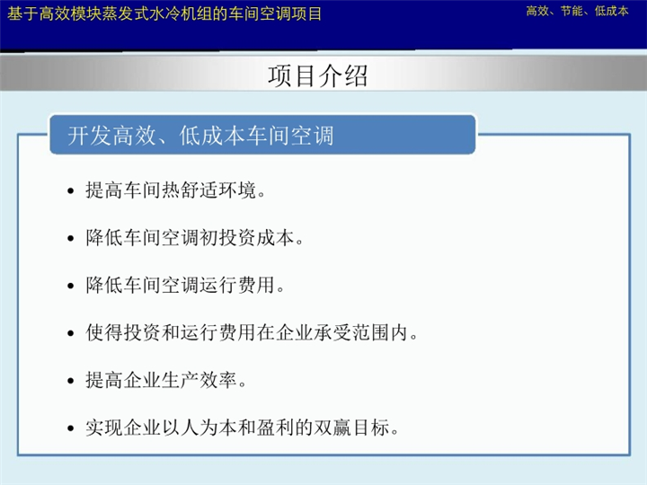 基于高效模块蒸发式水冷机组的车间空调--项目计划书
